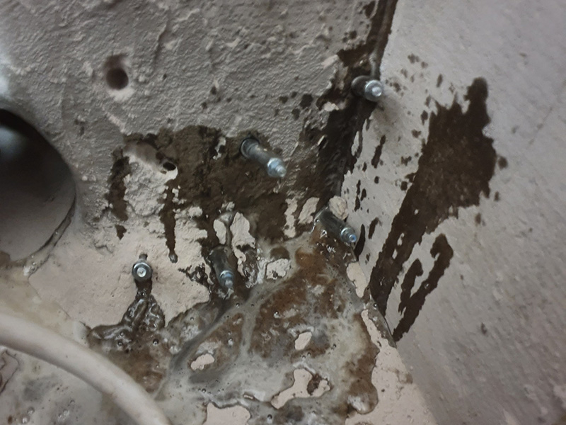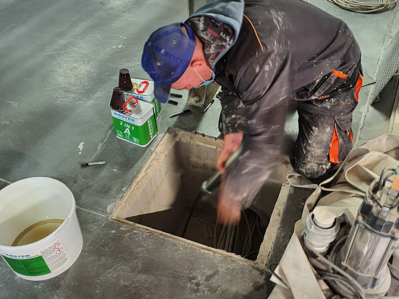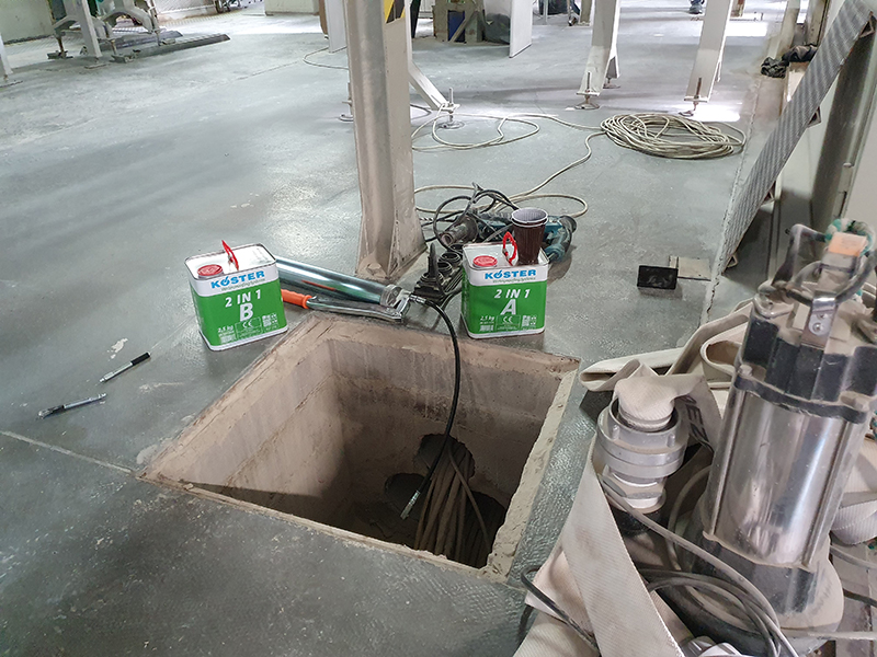 Sealing the joints between the wall and the bottom plate. Crack injection and seal cracks elastically.