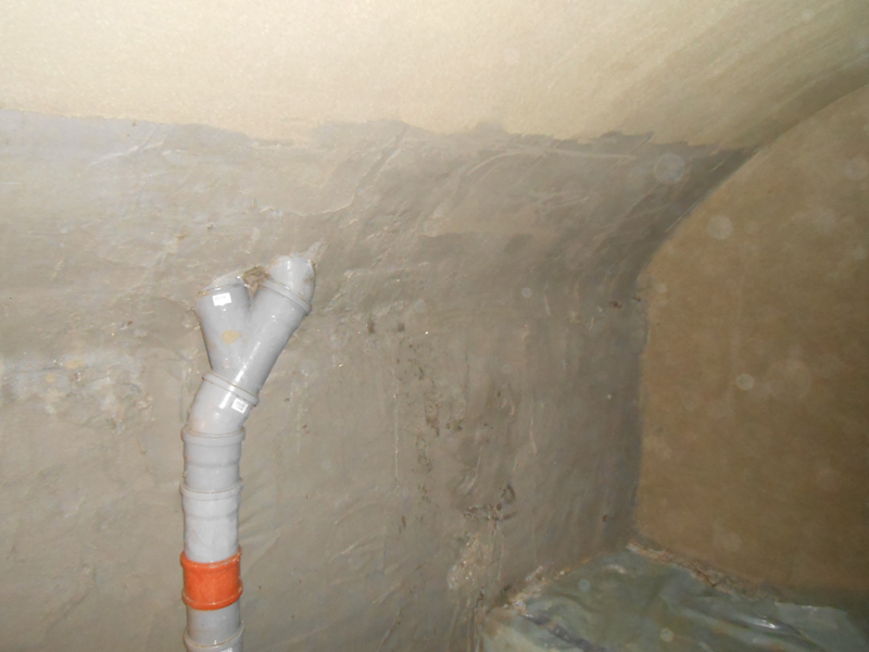 Verpressung gegen Feuchtigkeit und fließendes Wasser in einem Gewölbekeller aus dem Jahr 1845.