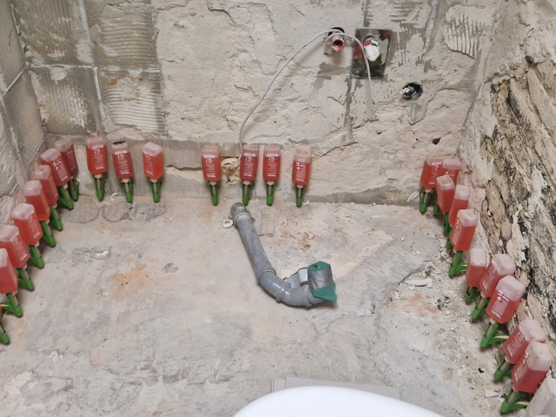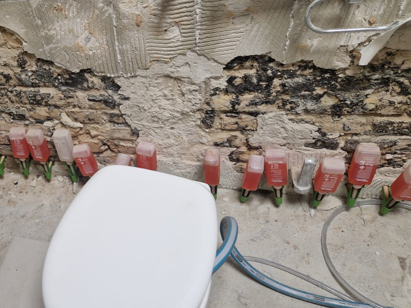 Nachträglicher Einbau einer Horizontalsperre, Crisin 76 im Erdgeschoss.