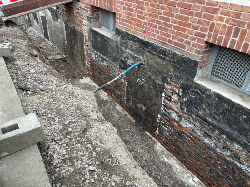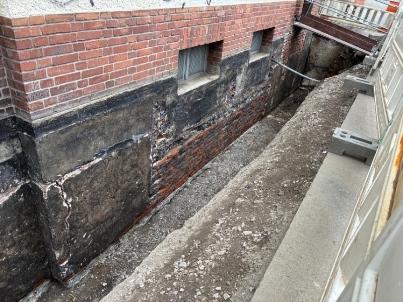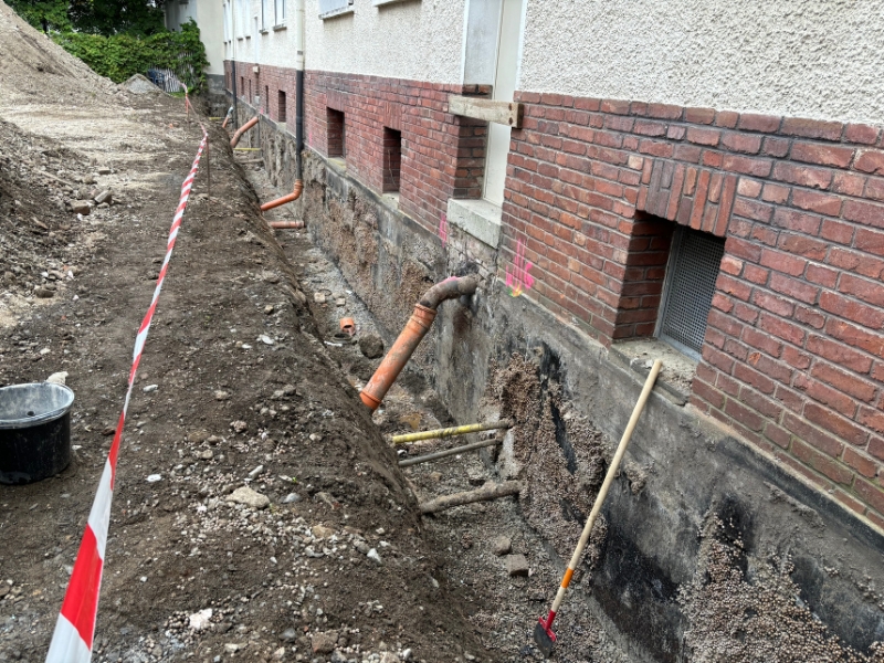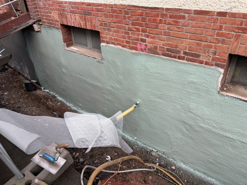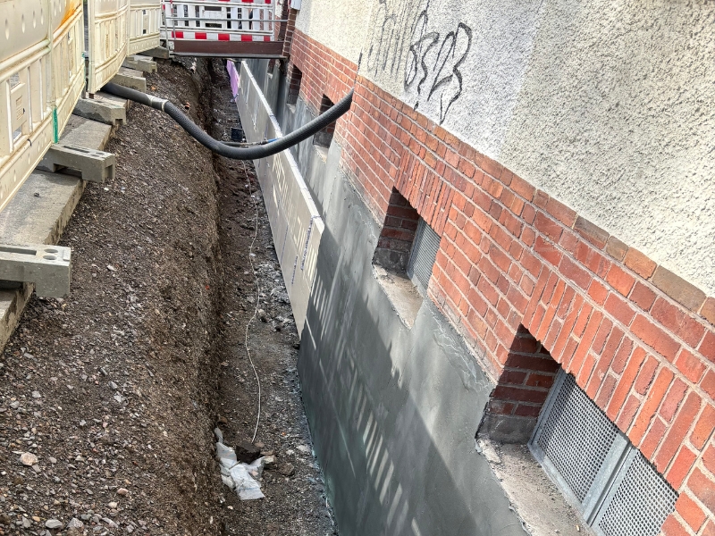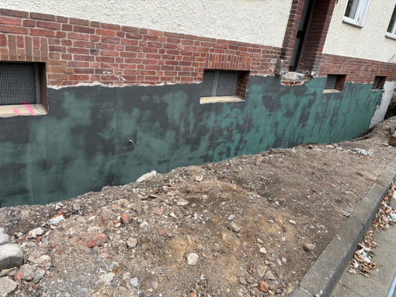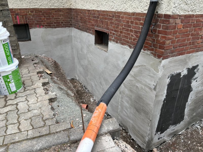 1. Reinigung der Wandoberfläche2. Egalisierung Wandoberfläche mittels Sperrputz3. Kratzspachtelung mit NB 4000 auf Bituminösen tragfähigen Untergründen4. Außenecken gebrochen, Innenecken mit einer Hohlkehle versehen5. Flächiger Auftrag von NB 4000 inkl. Gewebe mittel Spritzgerät6. Außendämmung vollflächig mit NB 4000 verklebt