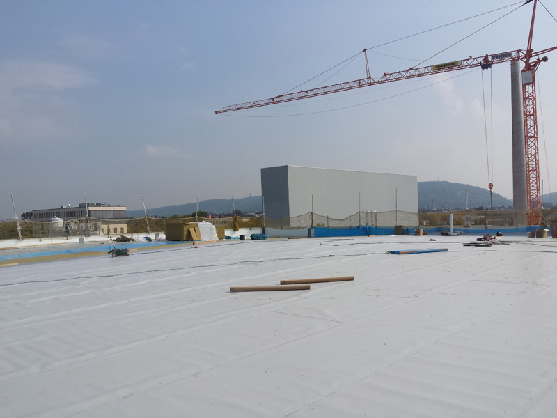 Deutschland, Köln, Neubau Bürogebäude Coeur Cologne, Dachabdichtung mit TPO-Dachbahnen