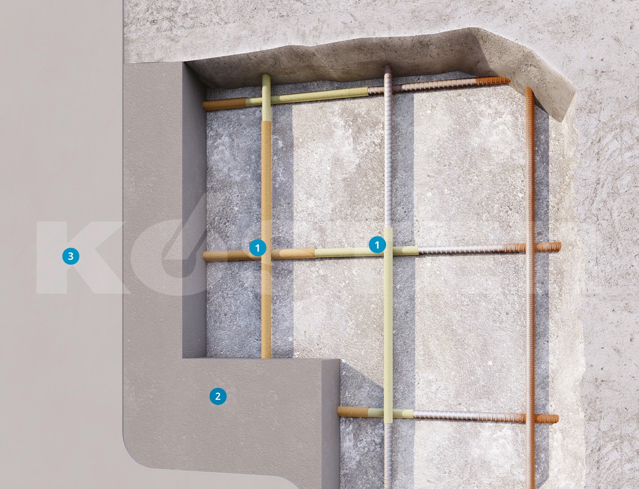Repairing and replacing concrete over large areas has requirements on ease of application, re-alkalizing the reinforcement, and replacing the concrete cover with water- and chemical-resistant specialty mortars. Certification for structural approval according to DIN EN 1504 is also a common requirement. Therefore, KÖSTER provides systems to meet all of these demands.