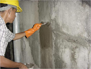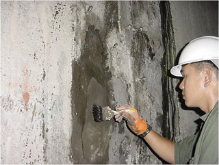Waterproofing the tunnel from the inside by applying a KOSTER sealing slurry and the KOSTER KD-System in 3 different steps (see above)