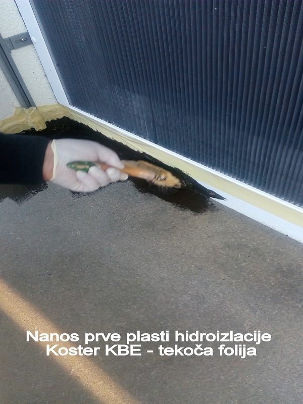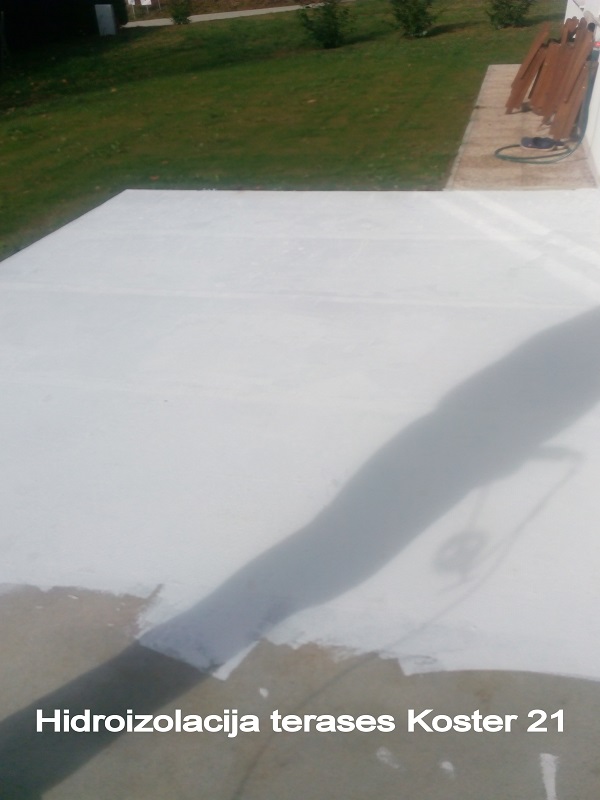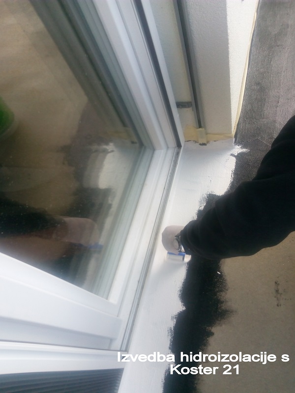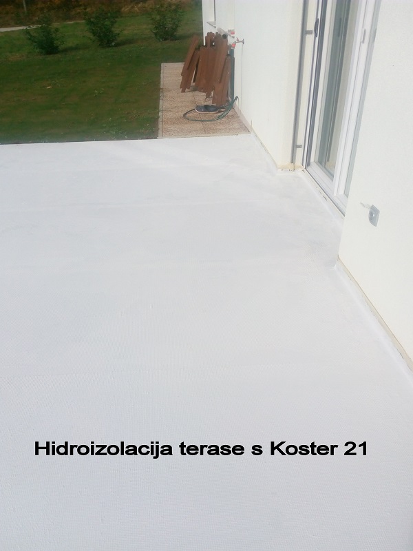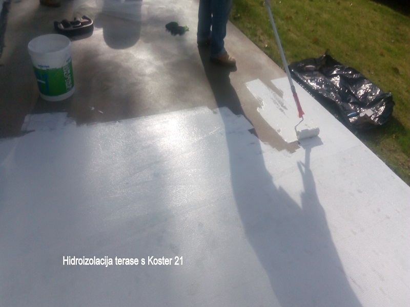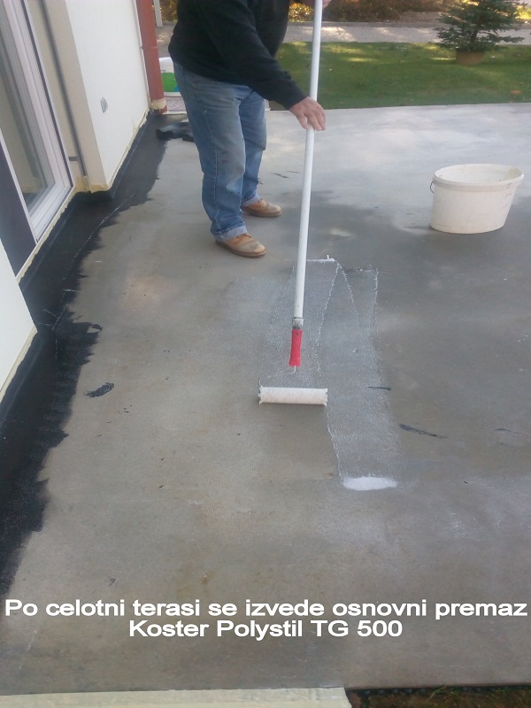 Najprej se je celotna površina betonske terase pravilno priravila (zbrusila). Sledila je izdelava/tesnjenje detaljov-stikov s Köster KBE Tekočo folijo in Köster Armirno mrežico. Nato je naslednji dan sledila izdelava tesnilnega sistema z osnovnim premazom Köster Polysil TG 500 in dvema nanosoma Köster 21. V sveži prvi nanos Köster 21 se je za še dodatno povečanje fleksibilnosti samega tesnilnega sistema vgradila Köster Armirna mrežica.
