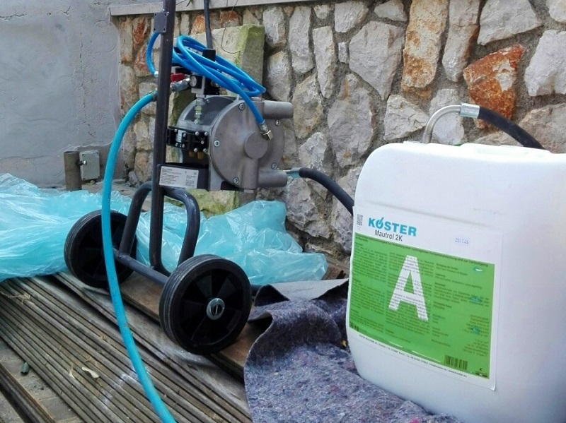 Izvedba horizontalnog prekida kapilarne vlage silicij-esterskom smolom KÖSTER Mautrol 2K te 3K akrilnim gelom KÖSTER Injekcijski Gel G4. Rasterno (plošno) injetiranje 3K akrilnim gelom KÖSTER Injekcijski Gel G4. Stabilizacija tla 2K PU injekcijskom pjenom KÖSTER Geofoam. Izvedba hidroizolacije sa negativne strane konstrukcije 1K cementnim premazom sa svojstvom kristalizacije KÖSTER NB 1 Sivi (otpornost na negativan hidostatski tlak do 13 bara).