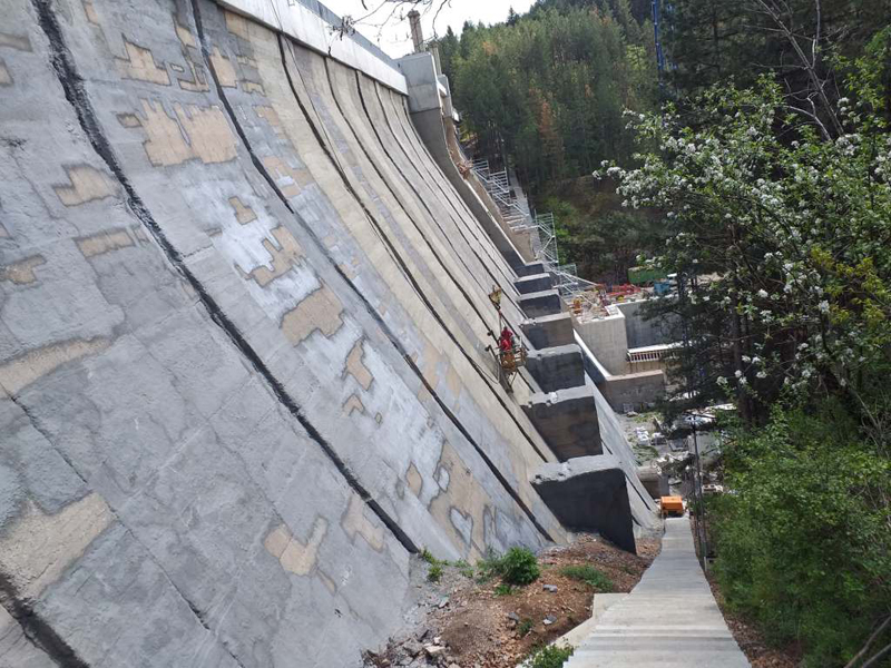 Restoration works at STUDENA Dam that is 55 m high and 259 m long reservoir at Struma river. Water volume 25 257 000 qubic meters.