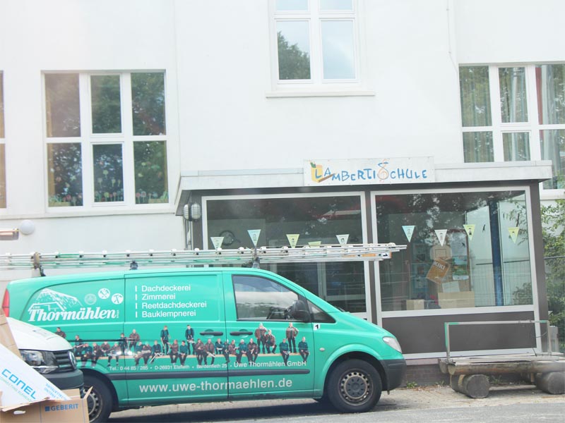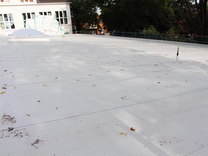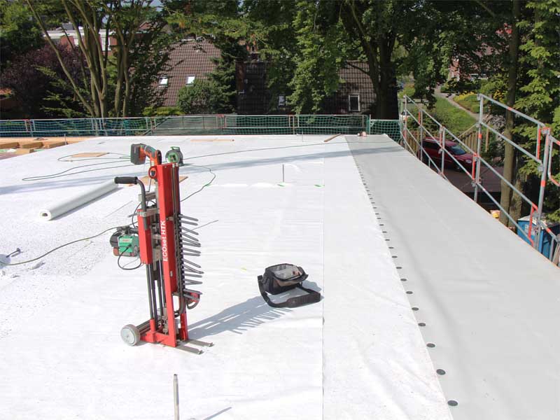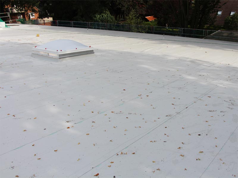 650 m² mechanisch befestigte TPO 1.8 auf dem Anbau der Lambertischule Aurich.