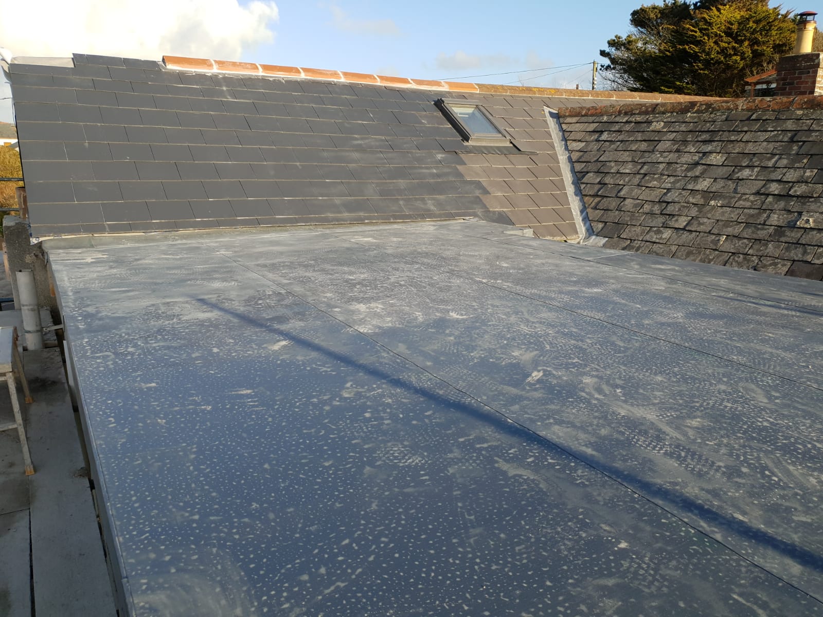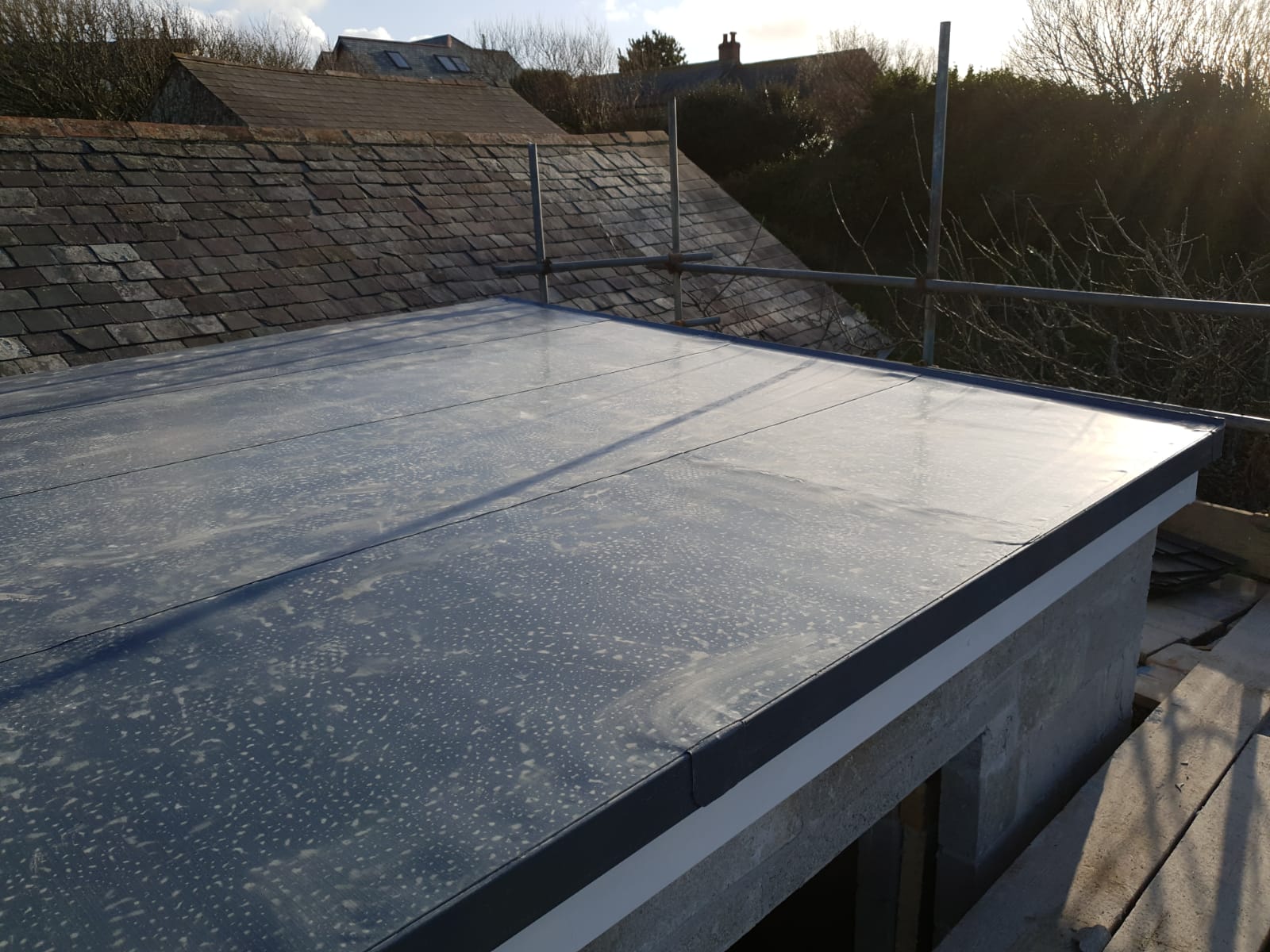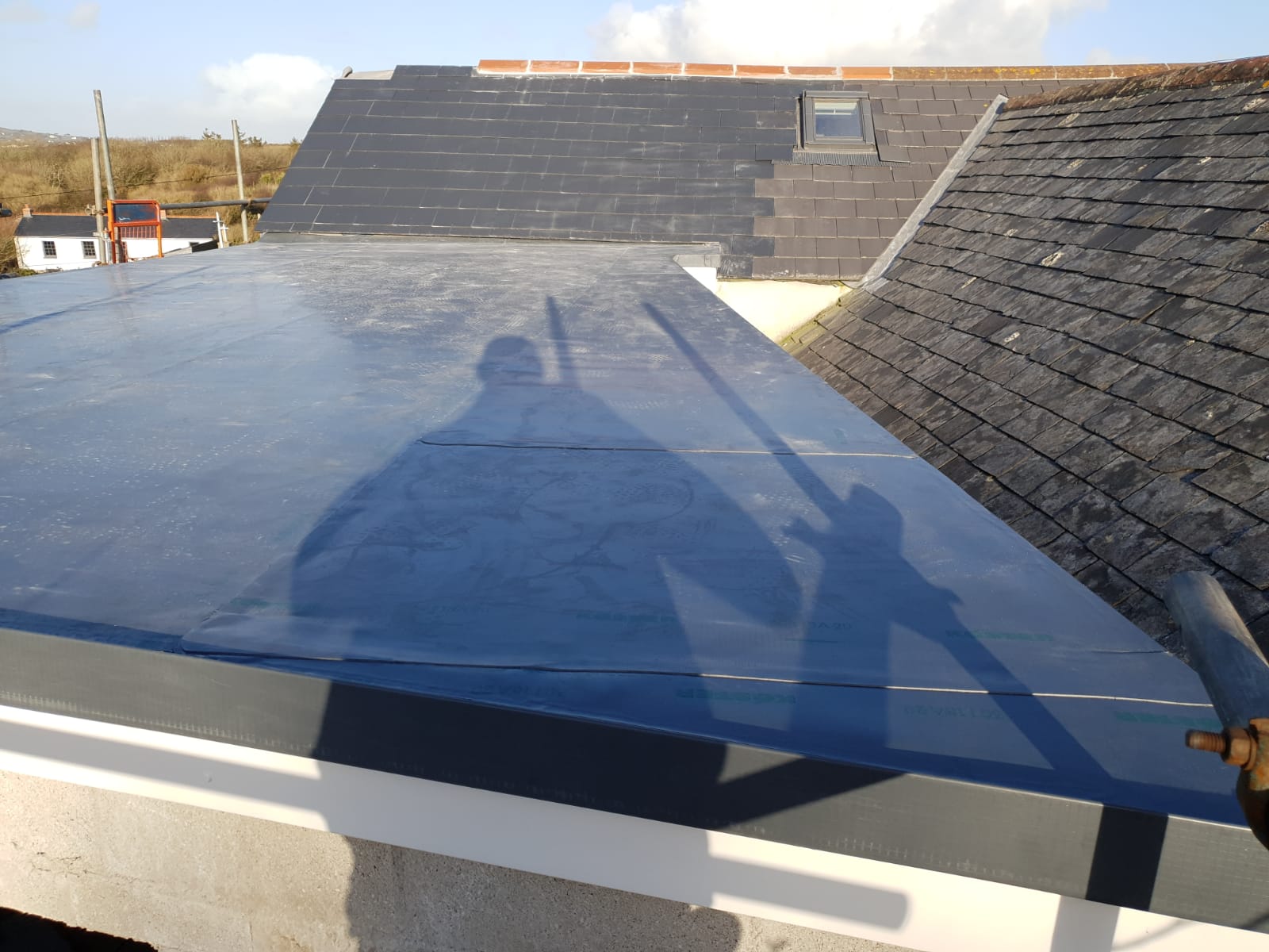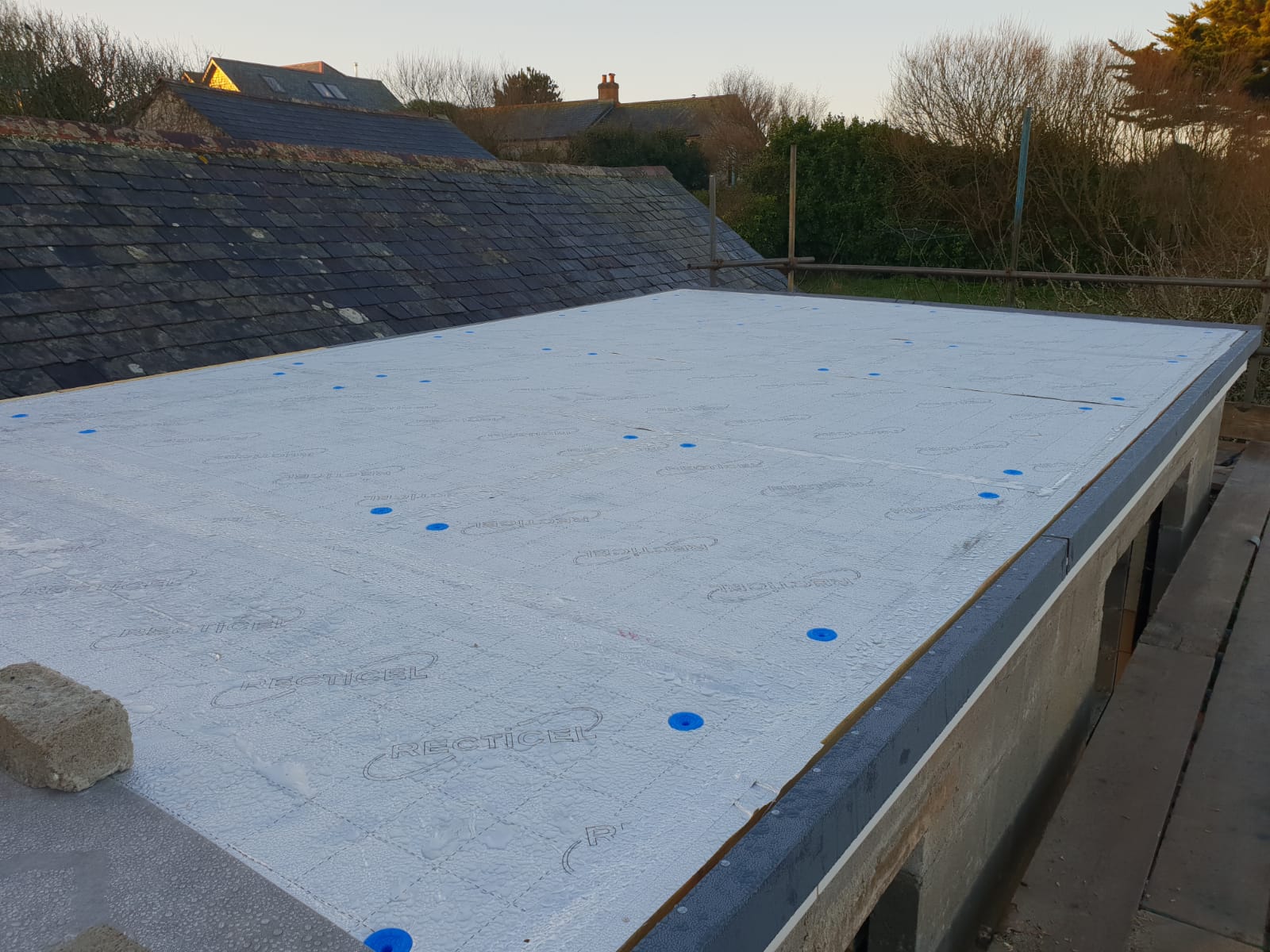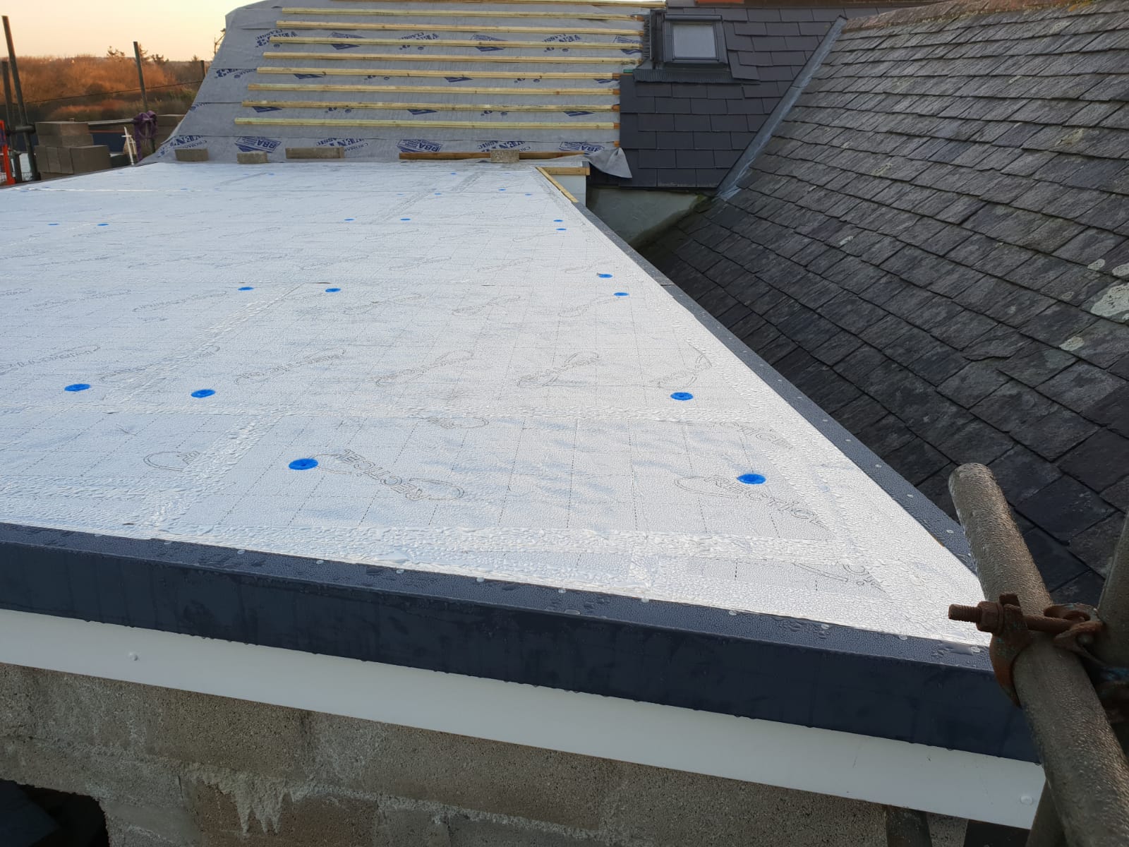 KÖSTER TPO was proposed as the waterproofing of choice for this residential extension following a C.P.D. presented to the project architect. The extension was built tightly against the neighbouring house meaning a box gutter had to be created from KÖSTER TPO Metal Composite sheets and plywood. The main warm roof build-up incorporated Koster Vapour Barrier FR, PUR rigid insulation followed by mechanically fastened KÖSTER TPO in Slate Grey.