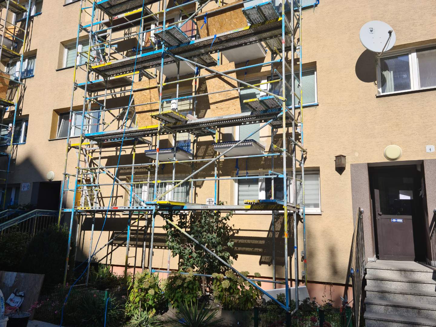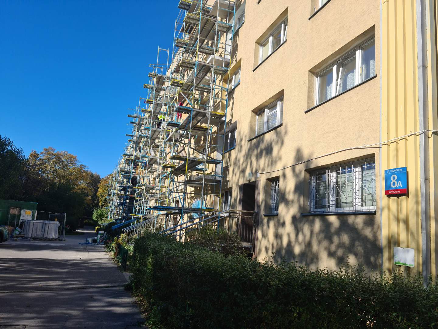 Wykonana została kompleksowa renowacja balkonów. Prace obejmowały naprawę batonu zaprawami PCC, hydroizolację podpłytkową zaprawą KOSTER NB Elastik oraz ułożenie płytek gresowych na kleju na bazie cementowej.