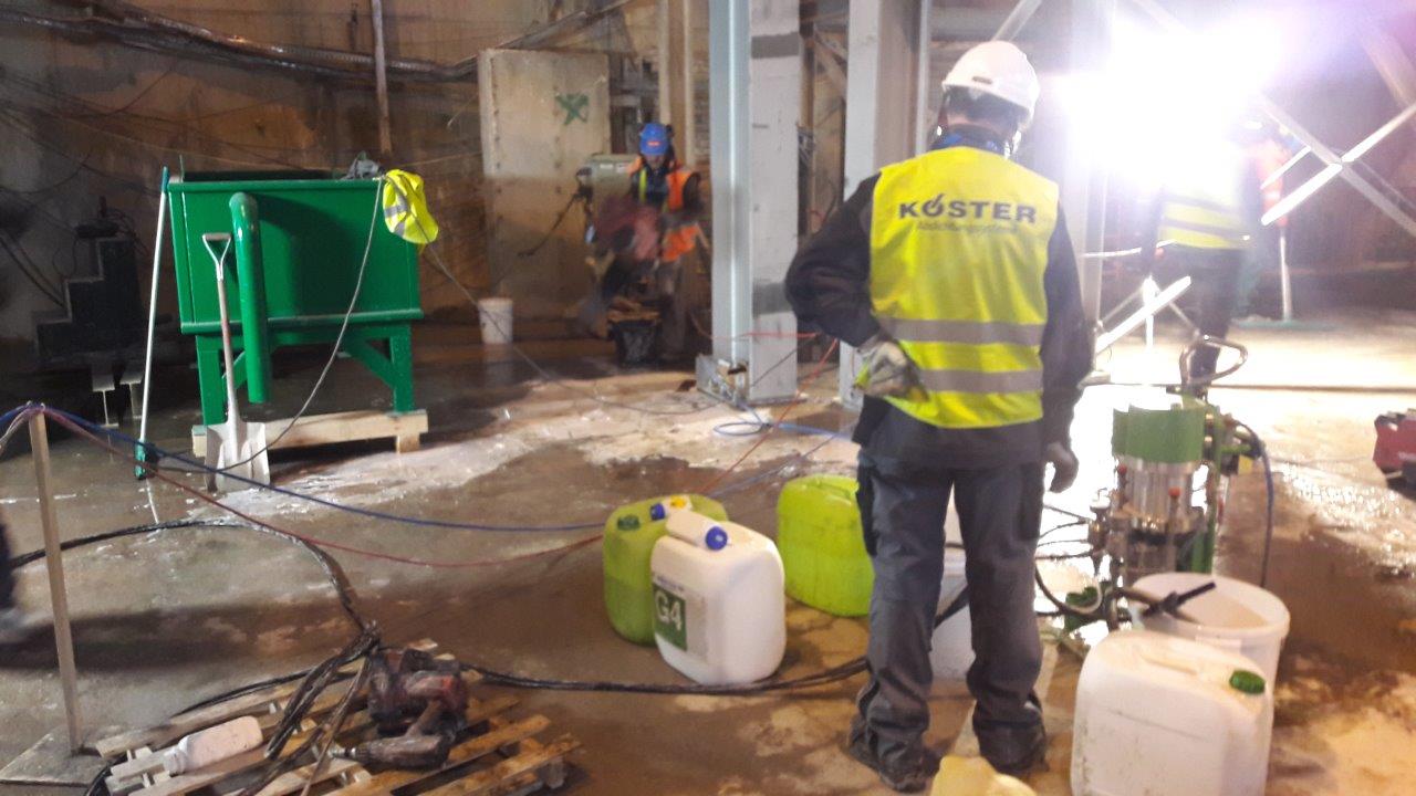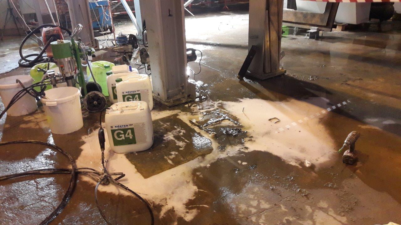Iniekcja płyty fundamentowej żelem akrylowym KOSTER Injektionsgel G4
