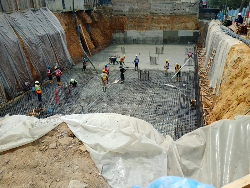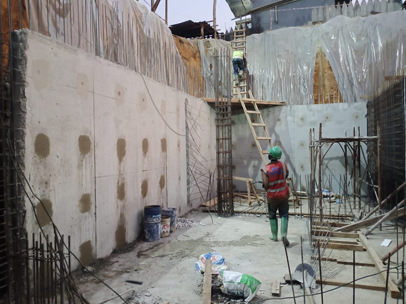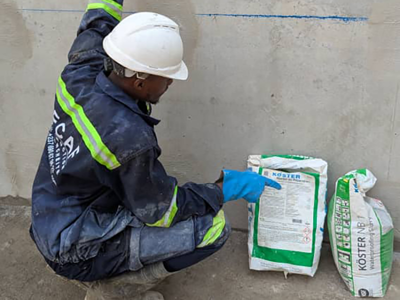 Comprehensive waterproofing of a residential building structure using multiple KÖSTER systems: - Integral waterproofing of structural concrete with KÖSTER BDM - Sealing of construction joints with KÖSTER Quellband - Repair of tie-rod holes using KÖSTER Repair Mortar and KÖSTER NB 1 Grey - Injection waterproofing of cold joints using KÖSTER 2 IN 1